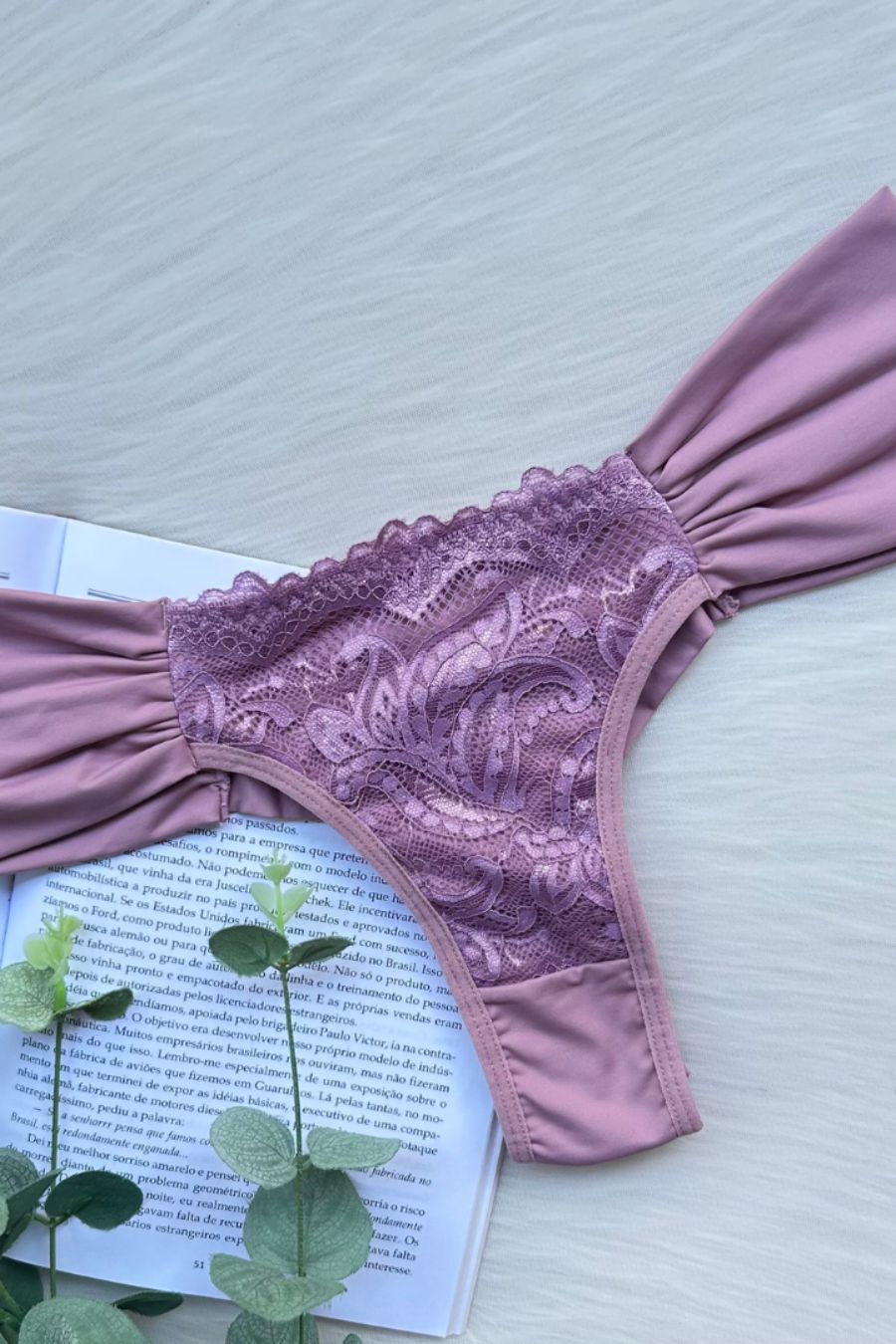 Calcinha fio dental com efeito “bombom”, criada para valorizar o corpo com conforto e caimento perfeito. A Satin Bloom Thong traz laterais um pouco mais largas em tecido duplo e leve drapeado, realçando quadril e cintura sem apertar e sem marcar.